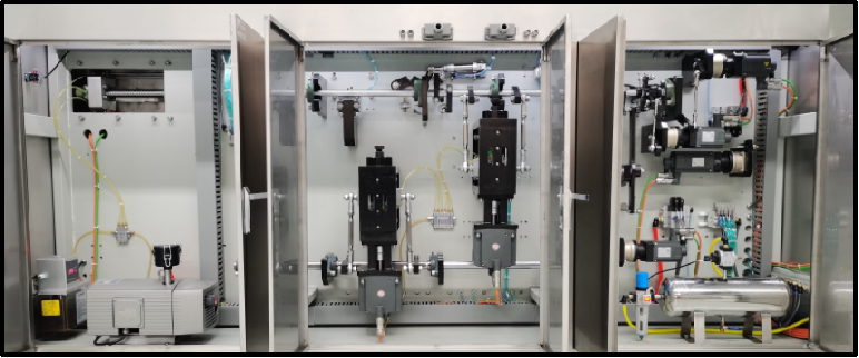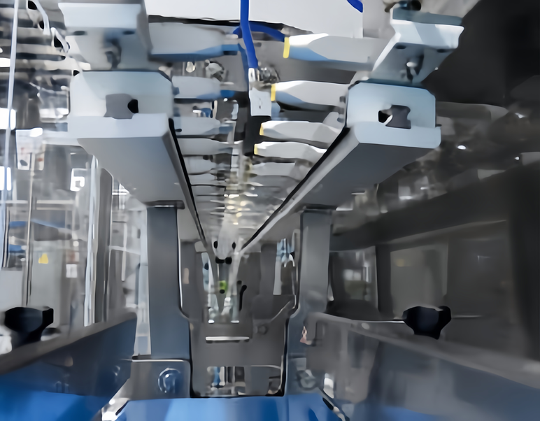 This machine features an optimized design, where all key actuating components are driven by cams on the main shaft, ensuring precise and stable operation. The cam and indexer are mounted on the main shaft and positioned behind the base plate, physically isolating them from the operating area. This effectively mitigates the impact of centrifugal force and inertia, enhancing the machine’s durability. The primary motion mechanisms are at the front, making the structure intuitive and facilitating maintenance and adjustments. The well-organized component layout improves efficiency in machine tuning and servicing. Packaging pouches are transported smoothly along a straight path with minimal movement distance, reducing vibrations and enhancing packaging accuracy.