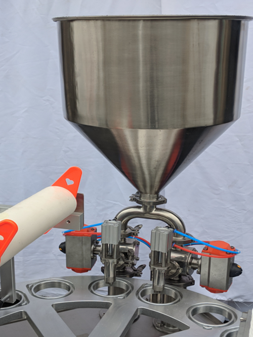 This is a highly efficient, fully automated packaging system for sealing plastic, paper, aluminum-plastic, and other cup-type products. The equipment integrates automatic cup feeding, precise filling, roll film sealing, and cup discharging into one seamless process, utilizing a rotary design to ensure smooth coordination of each step.